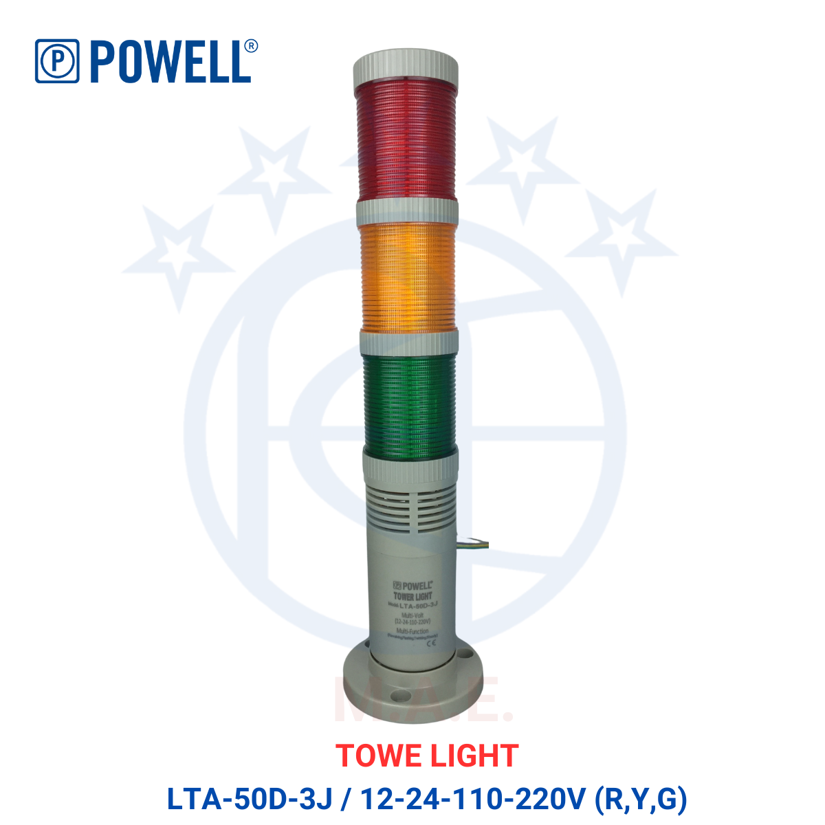 TOWER LIGHT LTA-50D-3J / 12-24-110-220V ( R,Y,G) REVOLVING, FLASHING, TWINKLING, STEADY ( 1 KART ISI 30 BOX / 1 BOX ISI 1 PCS )