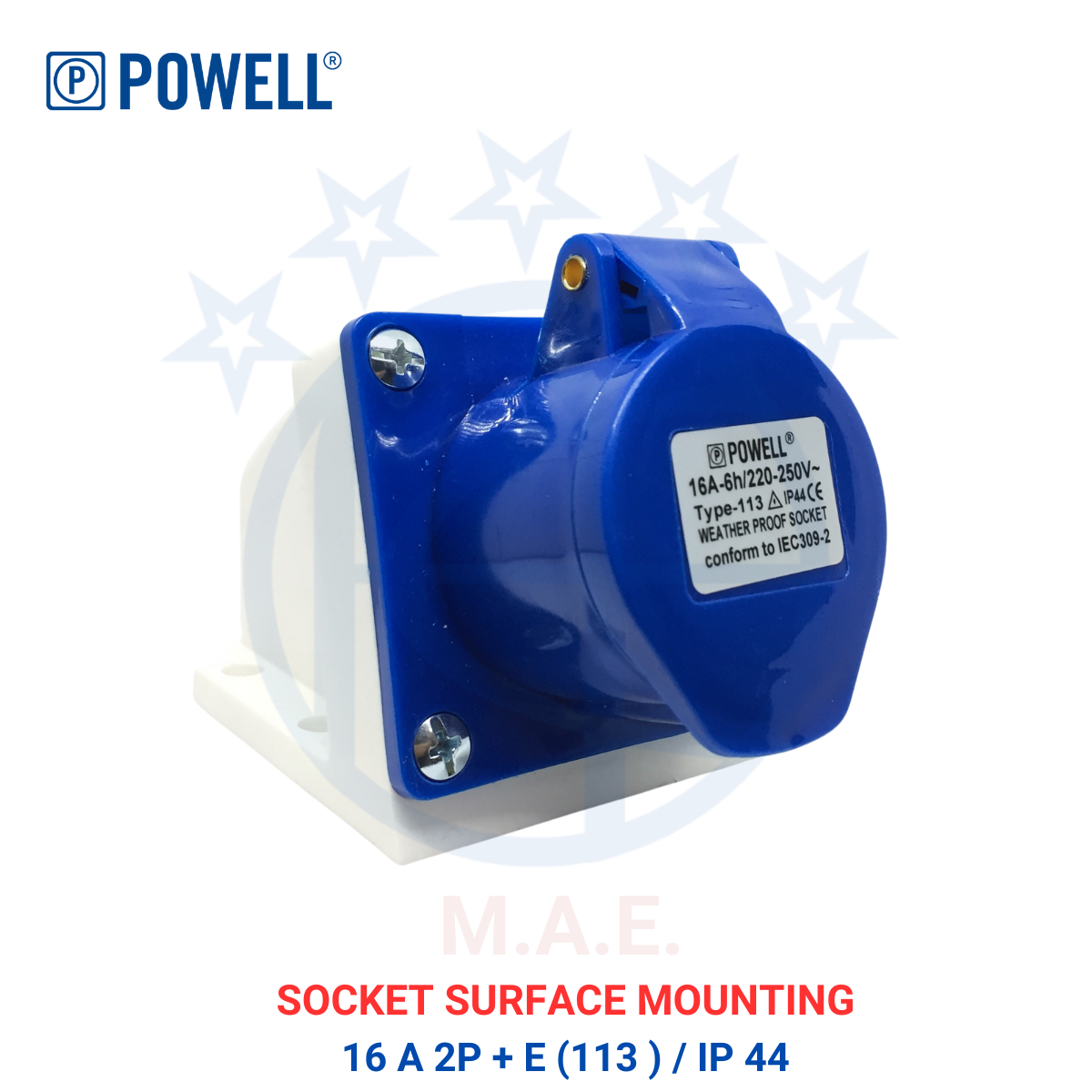SOCKET SURFACE MOUNTING 16 A 2P + E (113) / IP 44 ( 1 KART ISI 10 BOX / 1 BOX 10 PCS )