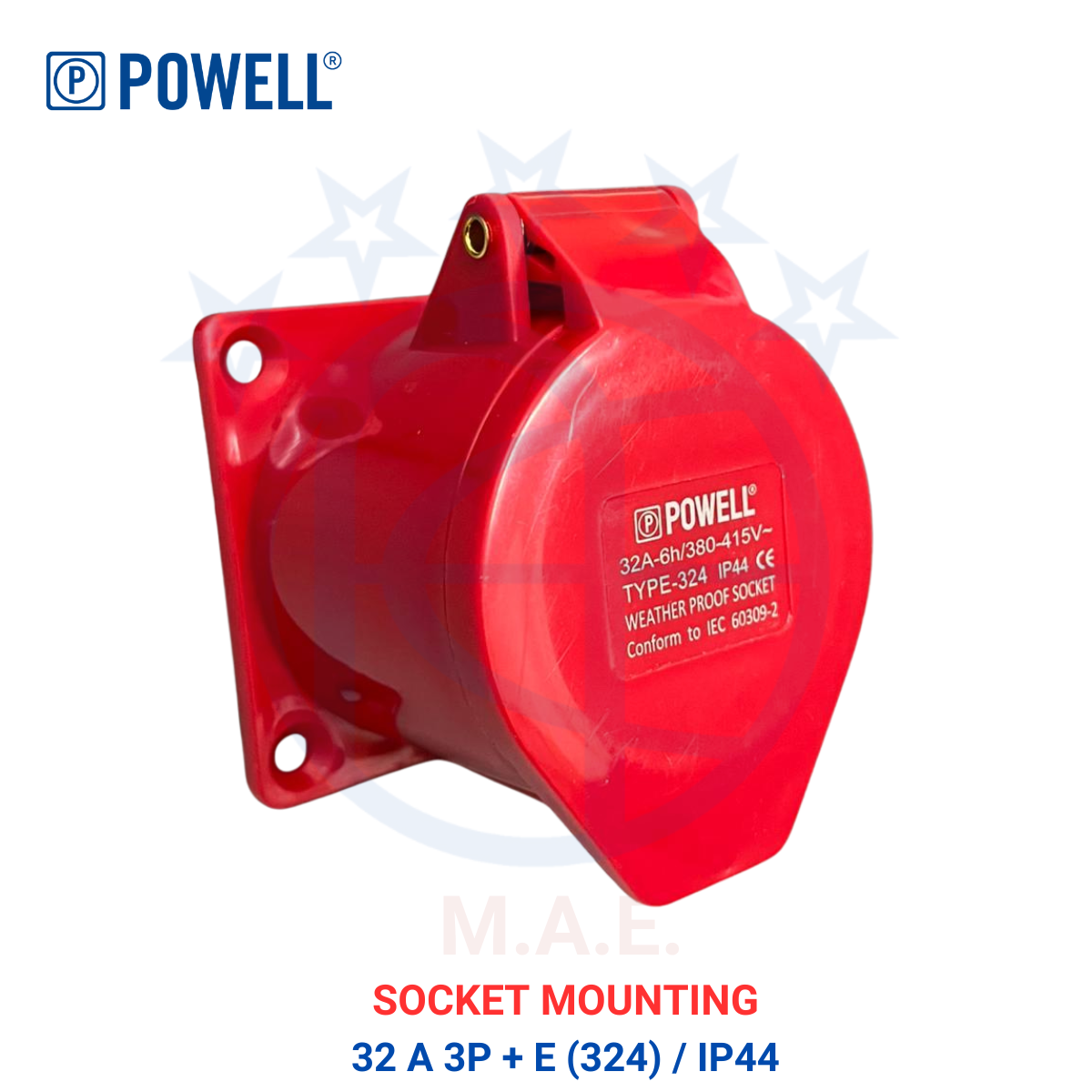 SOCKET MOUNTING 32 A 3P + E (324) / 44 ( 1 KART ISI 6 BOX /1 BOX ISI 10 PCS )