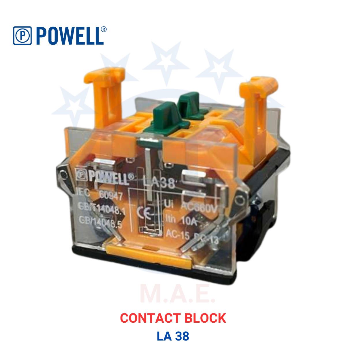 POWELL CONTACT BLOCK 1 NO + 1 NC RED